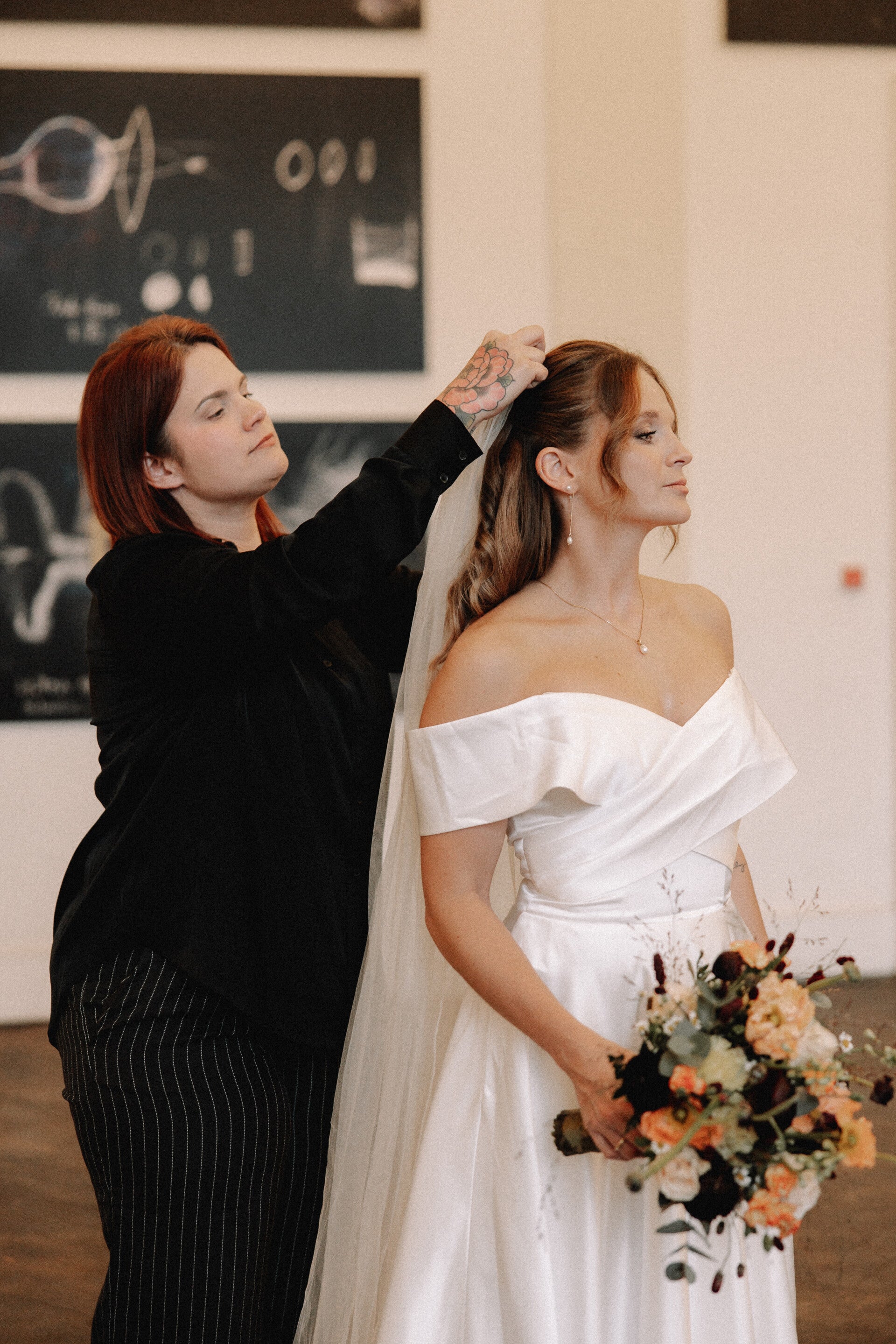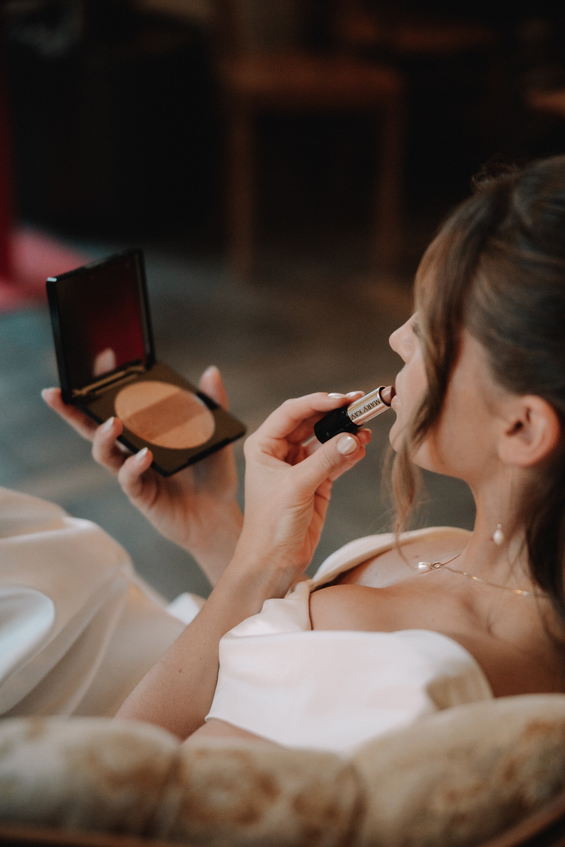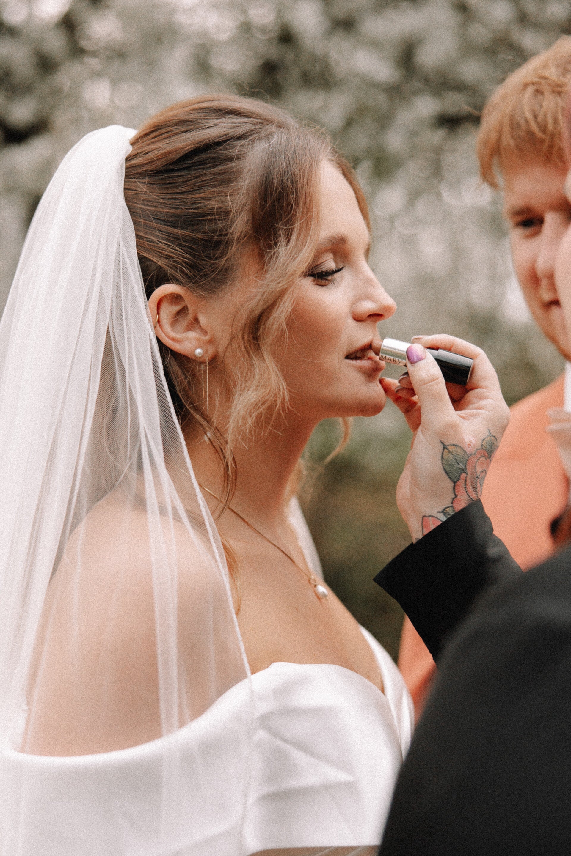 Lippenstift auffrischen, Haare richten, Schleier neu setzen –